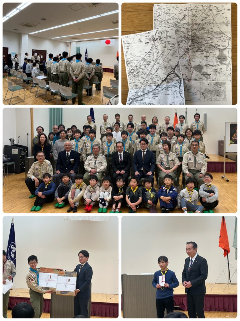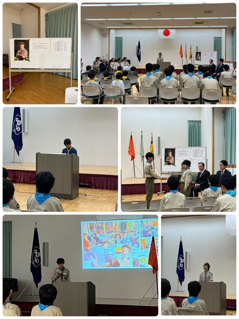 2月28日午後7時30分~エルセンターにて、カブ隊、ボーイ隊、ベンチャー隊、ローバー隊、各隊のスカウト、指導者、保護者が集合して、BP祭(ベーデンパウエル祭)の開会です。BP祭とは、ボーイスカウト活動の創始者ロバート・ベーデンパウエル卿の誕生日を祝う行事です。開会セレモニーの後、カブ隊代表者の「ベーデンパウエル卿について」の研究発表、ボーイ隊代表者による「アンノウンスカウト」の劇発表、ベンチャー隊代表者から1月におこなわれた「台湾嘉義縣(かぎけん)スカウト交流プログラム」の活動報告がありました。興味深い内容の発表に、みんな真剣に聞いていました。