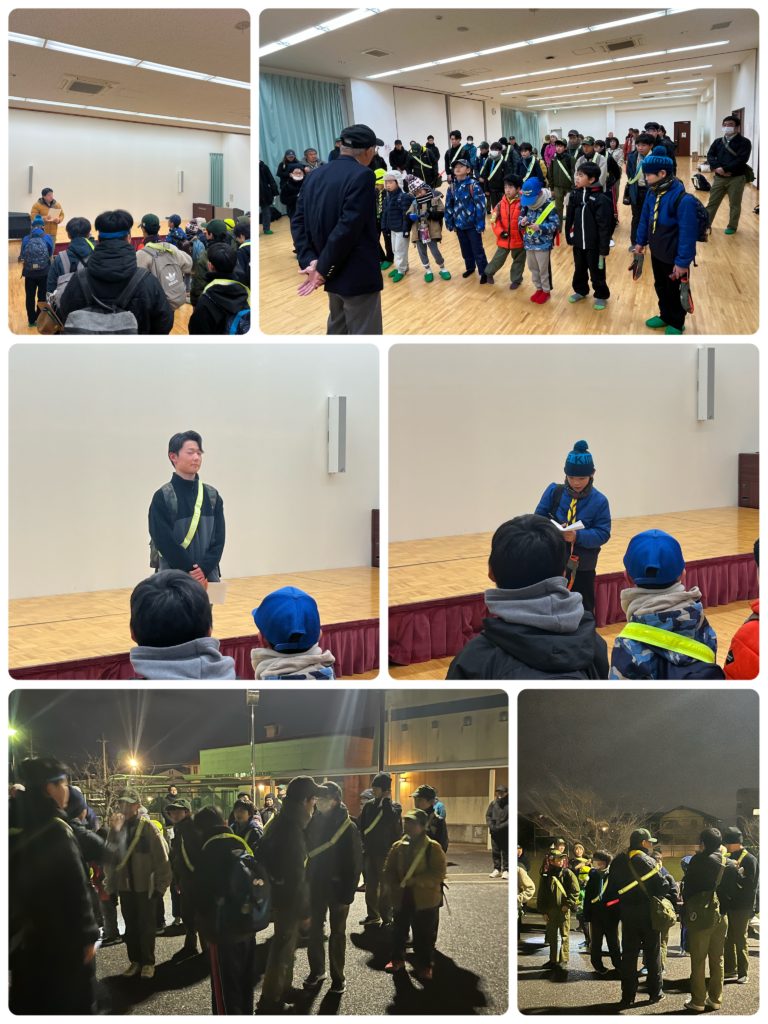 再度、注意事項などの説明があり、カブ隊代表者、ボーイ隊代表者がそれぞれ決意表明をしてくれました!手袋、帽子といった寒さ対策、懐中電灯や反射タスキなどの安全対策もしっかりと準備は万端です。