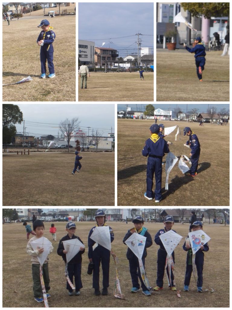 凧上げには少しコンディションがよくありませんでしたが、スカウトたちは元気に走り回って凧を上げていました。