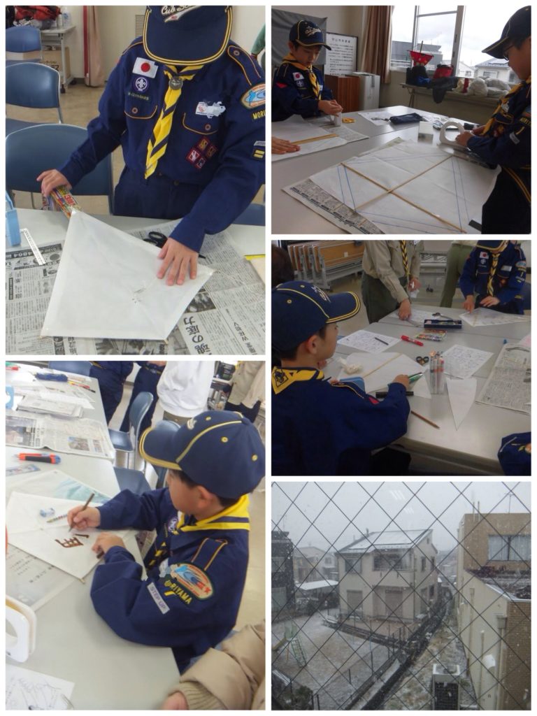 2月8日(日)、守山会館にてカブ隊は凧作りをしました。