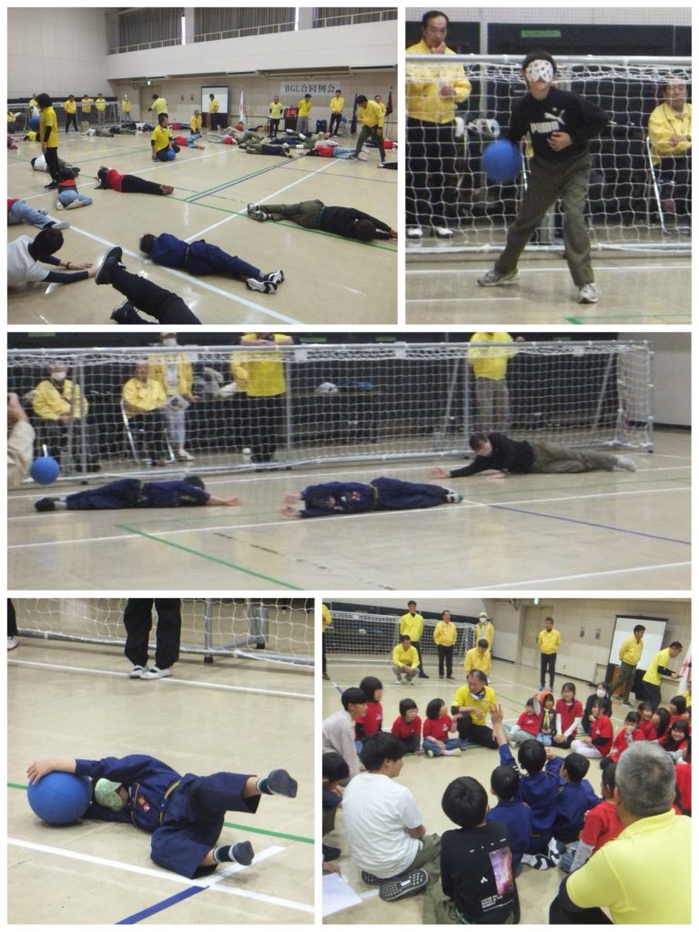 ゴールボールとは目隠しをしながら鈴の入ったボールを転がしてゴールに入れる、視覚障がい者の球技です。